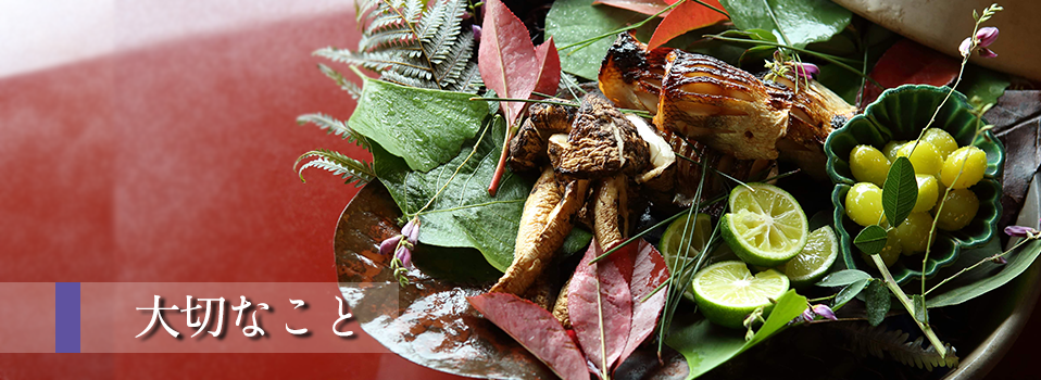 「私の料理は、お客さんが玄関を入った瞬間からお店を出られるまでです。この店のすべてに私のやってきたことが表現されています。お客さんが玄関を入られた瞬間から、亭主としての最大のプロデュースをするのが私の心構えです。