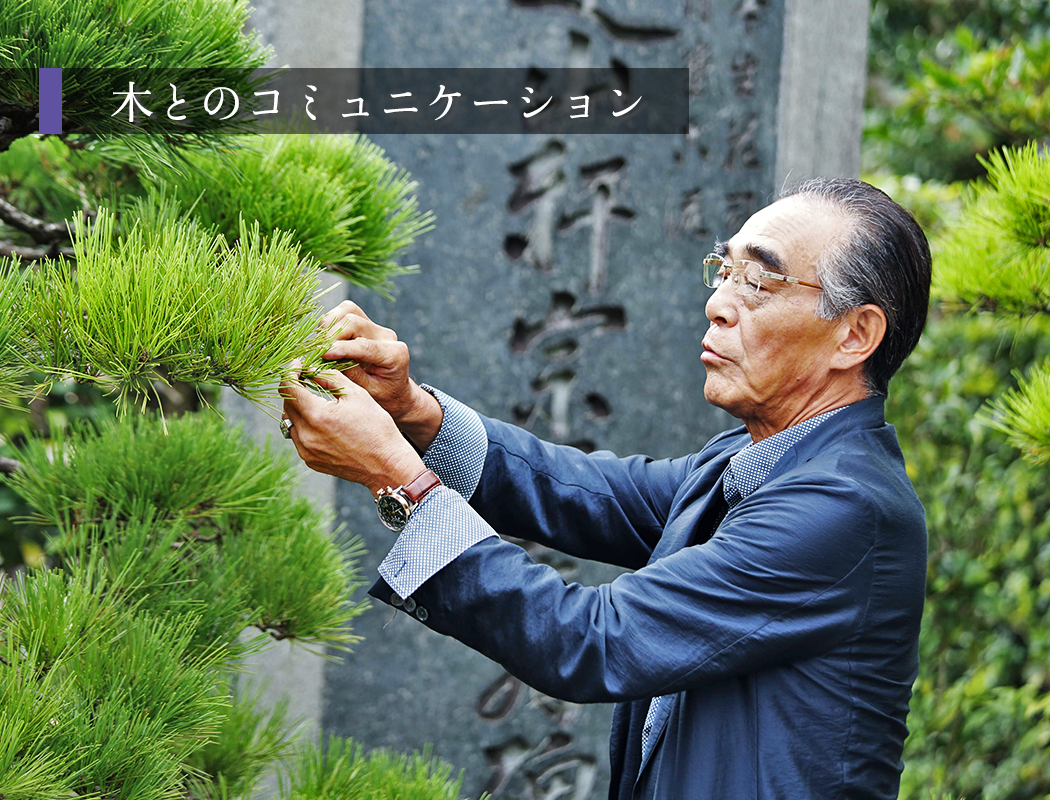施主の家が栄えるように木々の特性を見極め、数年後の景色をイメージする。