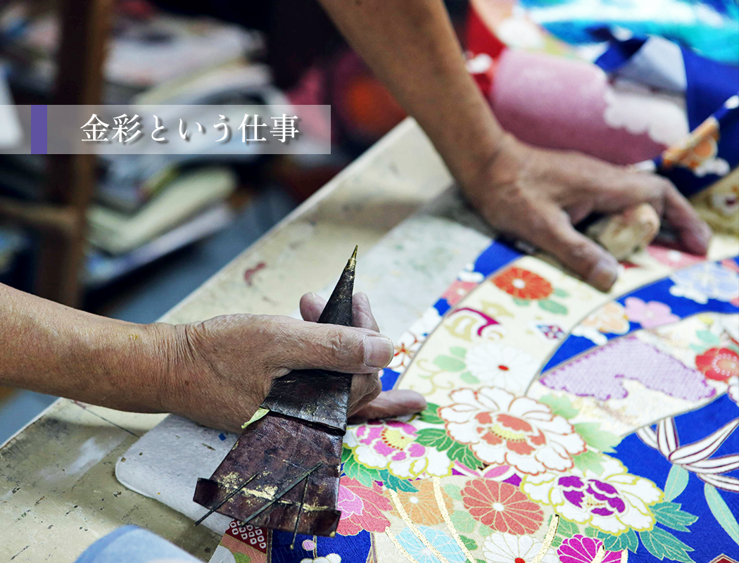 金彩はキモノづくりの最終工程。出来上がったキモノに化粧をするようなもの。