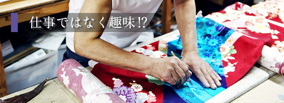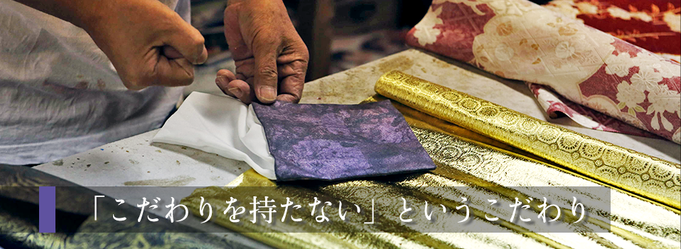 キモノだけにこだわってたらもうすぐ終わるけど、金彩という技術の可能性はまだまだあるんだと思ってるんです。パッと華やかになったり、ぐっと渋くなったり、金属感が出たり、本当に面白い世界です。」